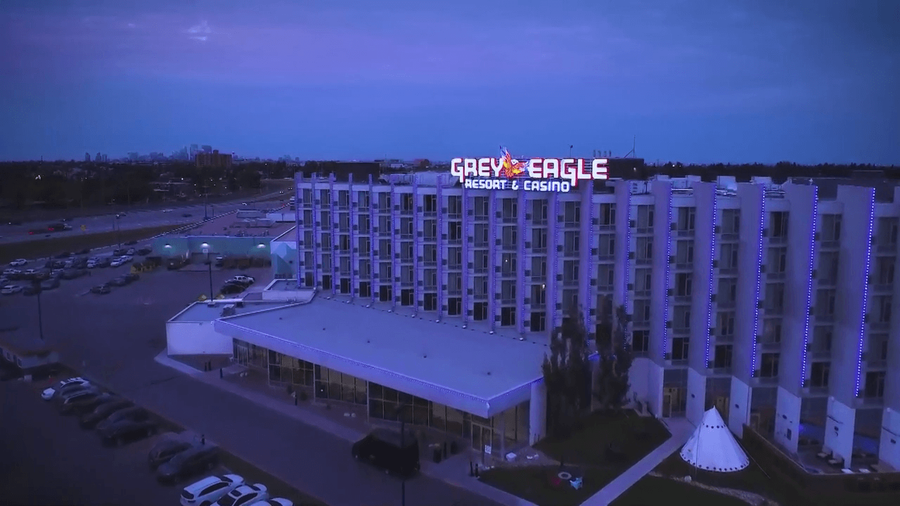 Grey Eagle Resort & Casino is a First Nations property operated by the Tsuut'ina Nation, located in southwest Calgary. The gaming floor spans just under 90,000 square feet and includes approximately 1,000 slots (penny to $25 denominations), 31 live table games, six poker tables and a dedicated bingo hall.