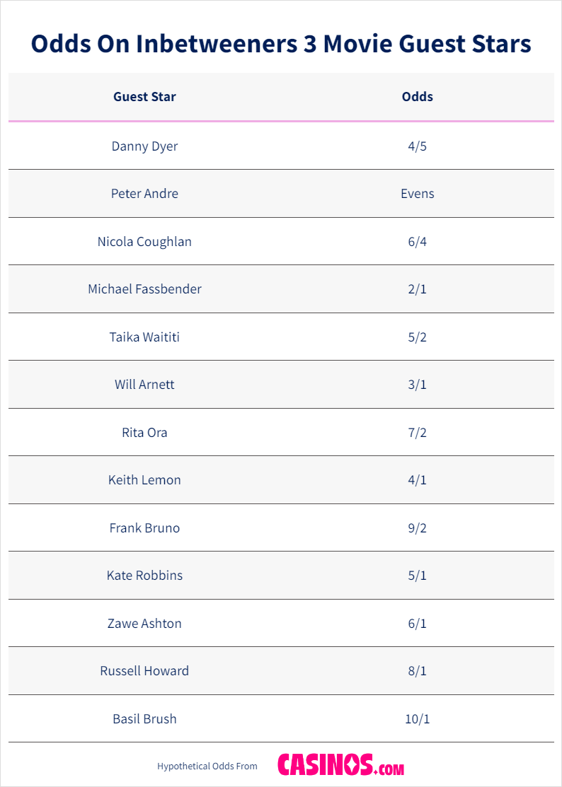 If Morris is looking for a huge star to make a cameo in Inbetweeners 3 then 2/1 shot Fassbender could be his man, while Waititi is 5/2 to do so, and his wife, superstar singer Rita Ora, is just 7/2.