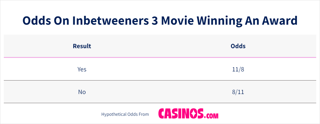 While it may not create any Oscars buzz, The Inbetweeners 3 is 11/8 to scoop an accolade, and 8/11 to miss out.