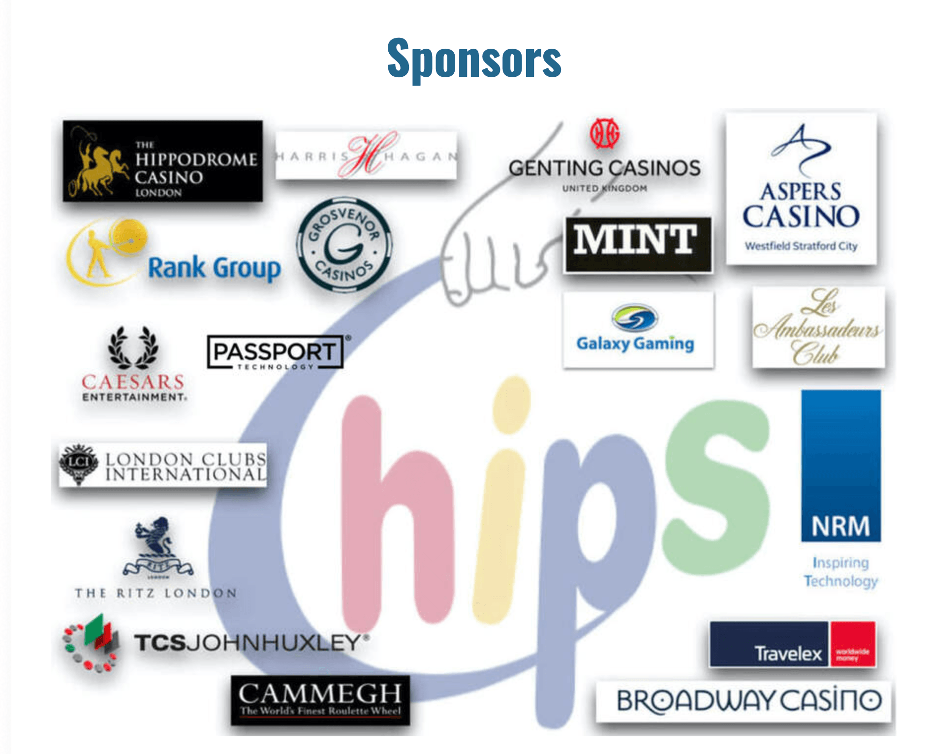At present we have some incredible sponsors, including some of the giants in the gambling industry like Rank Group, Hippodrome Casino, Aspers Casino, Genting Casinos, and Cammegh, amongst others, which can be found on our website.